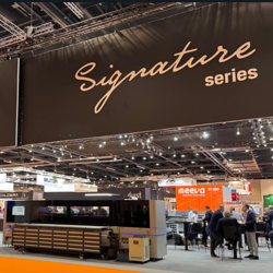 Grande protagonista dello stand è stata la nuova Serie Signature, una macchina ibrida rivoluzionaria disponibile nei formati da 2,1 metri e 3,3 metri.