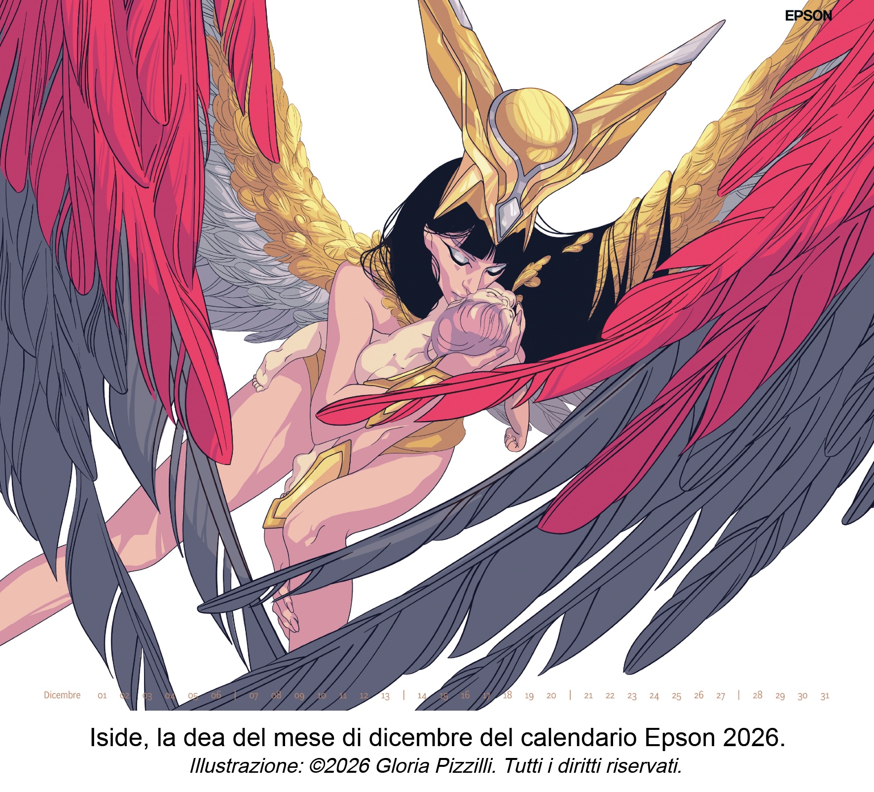 Con DIVINAE, il Calendario Epson 2026 conferma e rafforza una tradizione ormai consolidata: quella di trasformare un oggetto funzionale in un progetto culturale, artistico e collezionistico. L’edizione di quest’anno è affidata all’illustratrice Gloria Pizzilli e mette al centro la femminilità come principio archetipico, forza generativa e linguaggio universale, declinato attraverso dodici divinità provenienti da culture, epoche e geografie lontanissime tra loro.