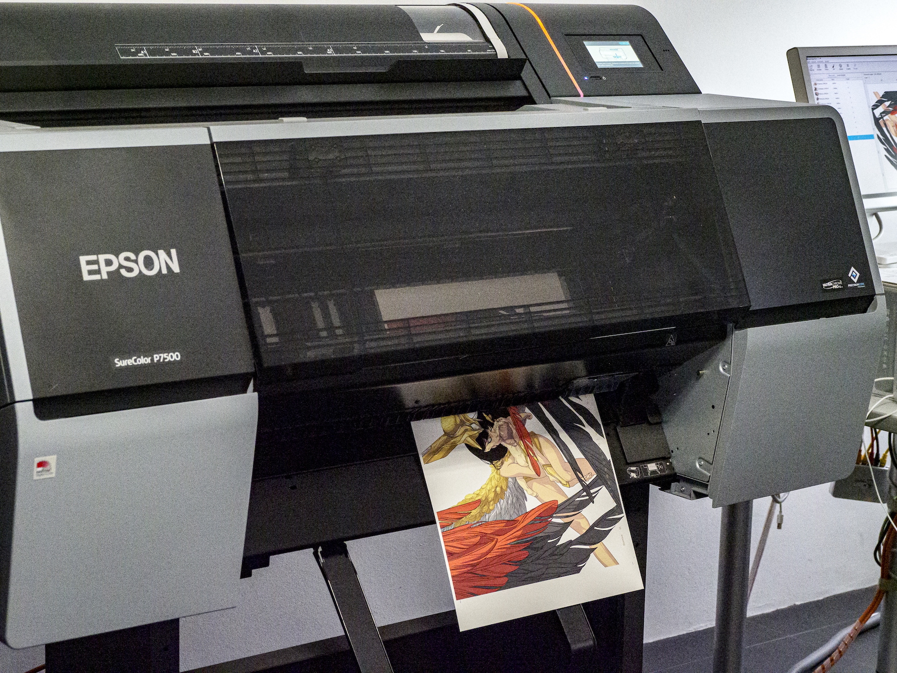La qualità della stampa non è un semplice supporto, ma parte integrante del progetto creativo. Le tavole di DIVINAE sono realizzate digitalmente con Adobe Illustrator e Photoshop e stampate su carta Fine Art grazie ai sistemi professionali Epson, in particolare le SureColor P7500, abbinate agli inchiostri UltraChrome Pro12 K3. Il risultato è una resa cromatica estremamente fedele, con neri profondi, colori brillanti ma equilibrati, linee nette e una straordinaria tenuta dei dettagli. La tecnologia Epson consente così di esaltare il lavoro dell’illustratrice, restituendo sulla carta tutta la complessità visiva ed emotiva delle sue immagini, senza compromessi.