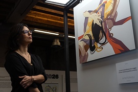 Il tratto è plastico, sinuoso, fortemente grafico. Linee morbide e continue costruiscono figure che sembrano sospese in uno spazio senza tempo, mentre la palette cromatica alterna tonalità pastello a colori più profondi e saturi. È una scelta stilistica che richiede estrema precisione nella resa finale, perché ogni variazione cromatica, ogni sfumatura, ogni dettaglio contribuisce alla forza narrativa dell’immagine. Ed è qui che entra in gioco, in modo tutt’altro che secondario, la tecnologia Epson.