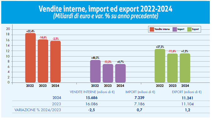In particolare, l’Industria delle Macchine per la Grafica e la Cartotecnica, che non ha mai smesso di crescere neanche l’anno scorso, chiude il 2024 con un + 4,9% a fatturato, trainato dalle macchine per il converting e dal mercato interno. L’Industria Grafica perde un altro 3,4% a fatturato e l’1,6% della produzione. Bene però la ripresa dell’export e la tenuta almeno della stampa editoriale, quella di libri in particolare. Al di là dell’andamento strutturale di questo settore, è importante segnalare come l’Industria Grafica italiana sia seconda in Europa per fatturato, dopo la Germania, con una quota percentuale del 16,1%, terza per numero di imprese e seconda per numero di addetti.