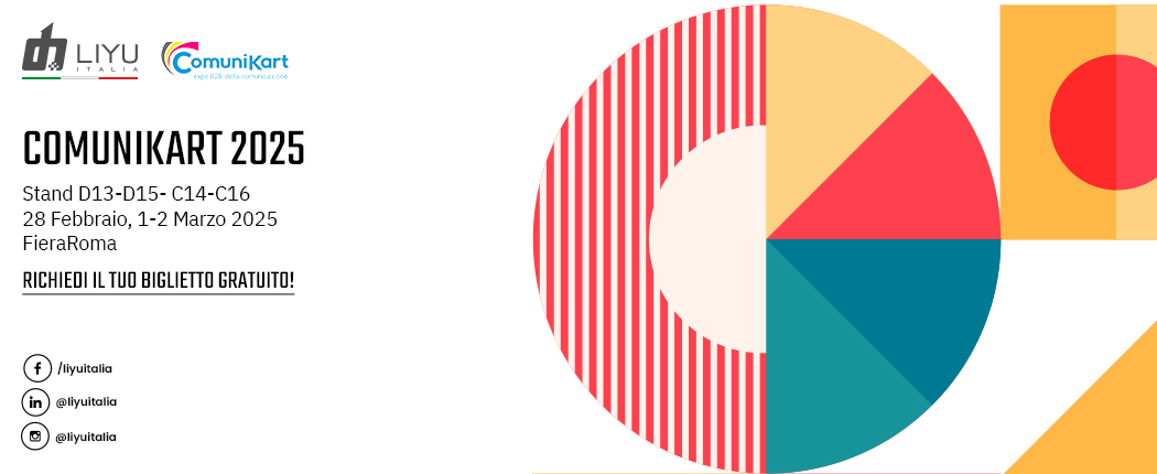 Per la prima volta, Liyu Italia sarà presente a Comunikart 2025, la fiera di riferimento per il mondo della comunicazione visiva, in programma dal 28 febbraio al 2 marzo presso la Fiera di Roma. Un appuntamento imperdibile per tutti i professionisti del settore che vogliono scoprire le tecnologie più avanzate per la stampa digitale e il taglio.