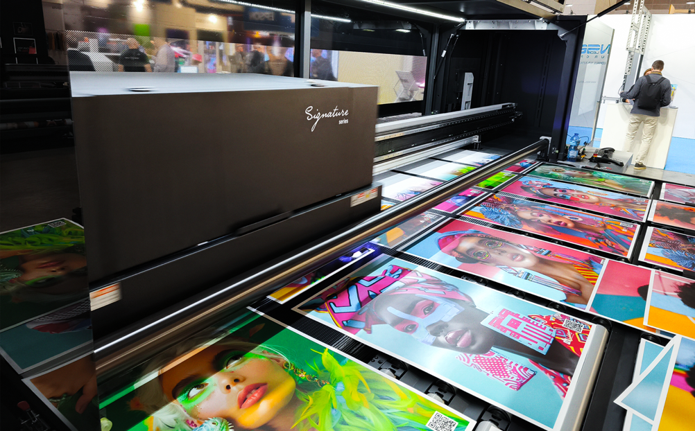 Lo stand, fortemente orientato all’esperienza tecnologica, ha attirato professionisti interessati a soluzioni avanzate, tra cui la nuova Signature Series, piattaforma ibrida di fascia industriale, progettata per garantire massima versatilità operativa e volumi produttivi elevati, con una qualità di stampa fotografica costante su supporti rigidi e flessibili, presentata in anteprima nazionale proprio a Viscom Italia 2025.