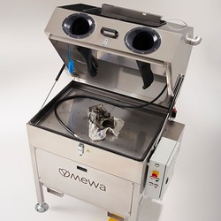 La gamma Mewa è stata recentemente ampliata con l’introduzione di potenti lavapezzi ad alta pressione. Qui l’effetto del liquido detergente biologico viene potenziato dall’effetto dell’alta pressione, fino a 80 bar. Utilizzando l’ugello ad alta pressione, è possibile pulire in modo accurato ed efficace anche pezzi molto sporchi con forme geometriche particolarmente complesse. L’ampia superficie di lavoro consente di pulire pezzi molto grandi, mentre la presenza di microrganismi nel liquido detergente a pH neutro ne assicura una lunga durata. È quindi una soluzione sostenibile e rispettosa dell’ambiente.