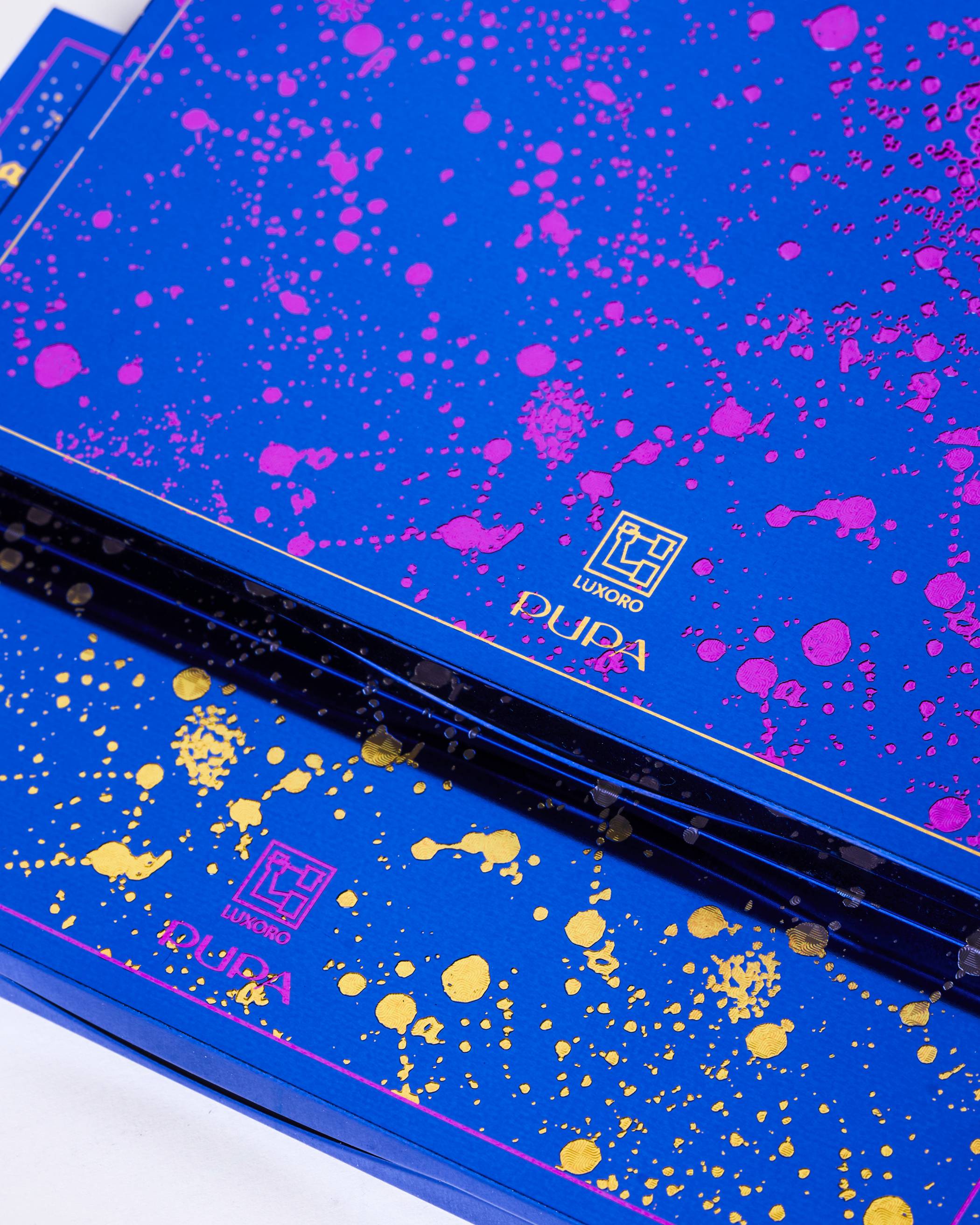 Il progetto, opera del design di Paolo Proserpio, si svela in più livelli e presenta diverse grafiche, diversi packaging e diverse nobilitazioni per custodire due prodotti della famosissima casa cosmetica Pupa Milano: un blush sui toni del rosato e una trousse dalla palette spaziale.