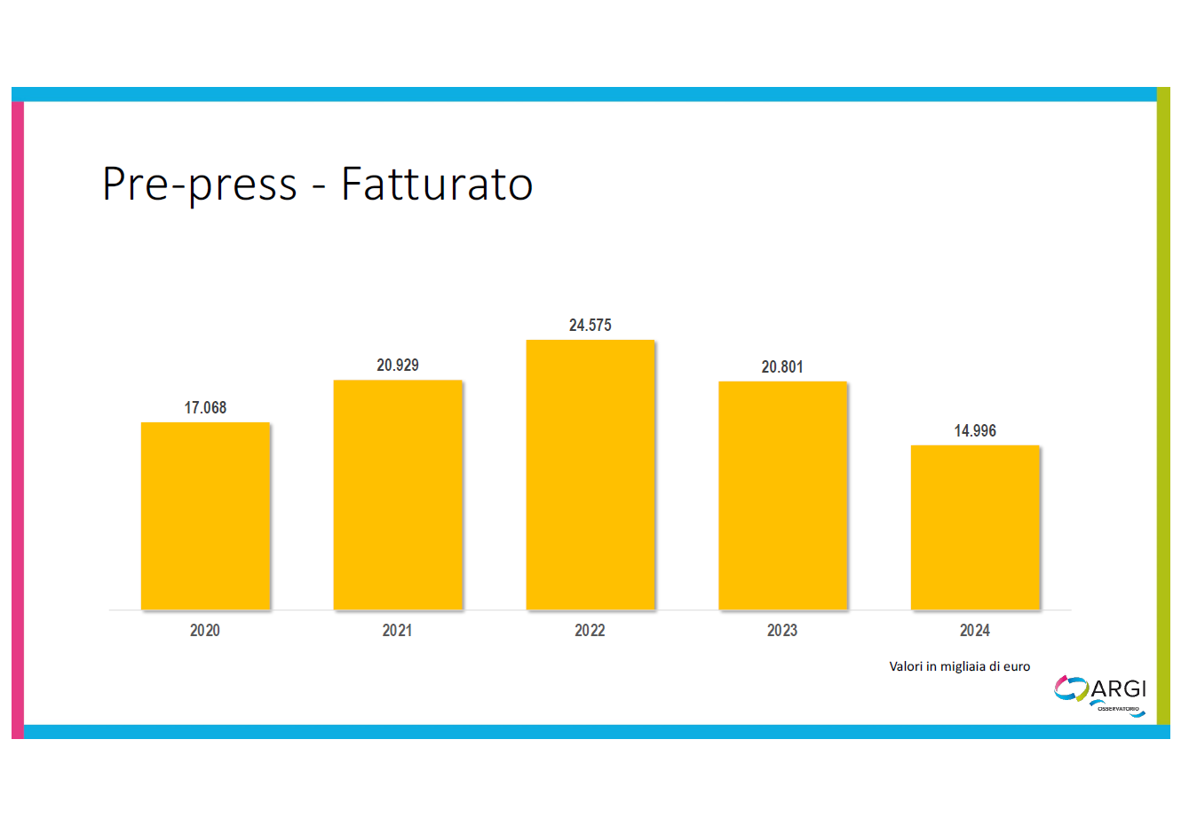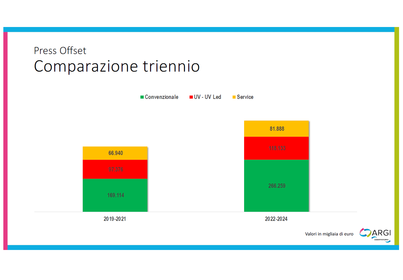 Se allarghiamo la lente di analisi e valutiamo infatti il triennio 2022-2024 rispetto al precedente, vediamo che la crescita è importante e vale per tutte le voci considerate. Essendo questo un mercato maturo, dove assistiamo ad accorpamenti aziendali e partnership fra stampatori, questi risultati restano di soddisfazione.