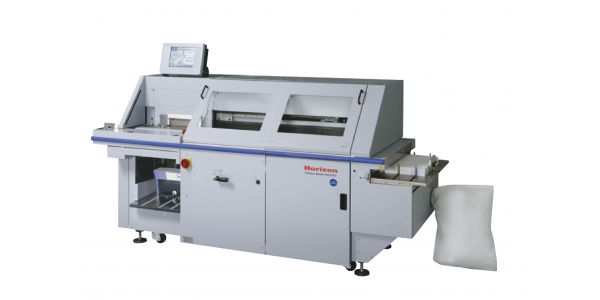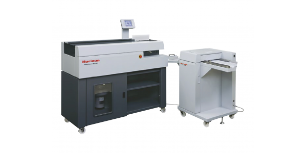 La macchina viene fornita completa dell’unità di uscita e raccolta libri con una altezza pila fino a 300 mm. La BQ-480 può andare in line con i trilaterali Horizon HT-80 o HT-1000V.