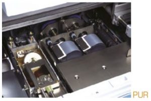 L’operatore, inoltre, può facilmente sostituire i cassetti EVA e PUR così da utilizzare l’adesivo necessario in funzione della tipologia di carta e/o di stampa dei volumi da brossurare.